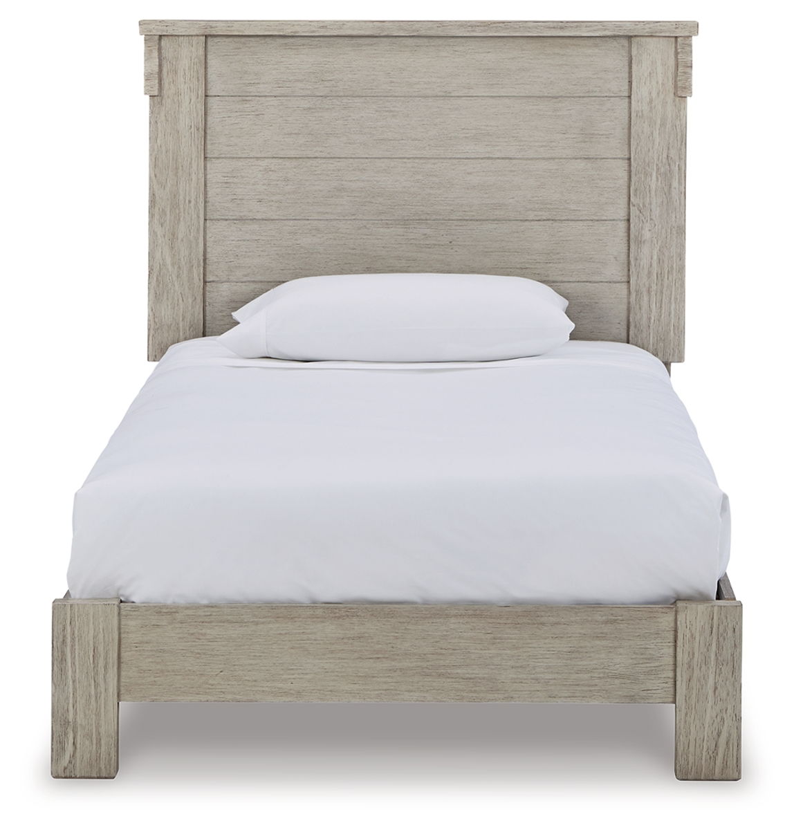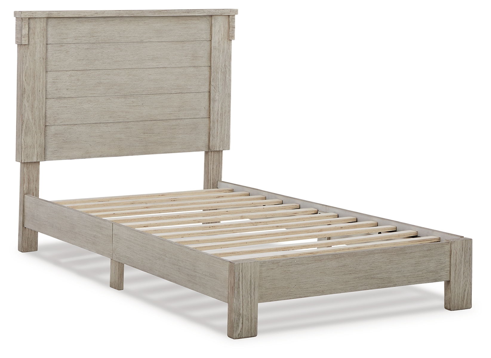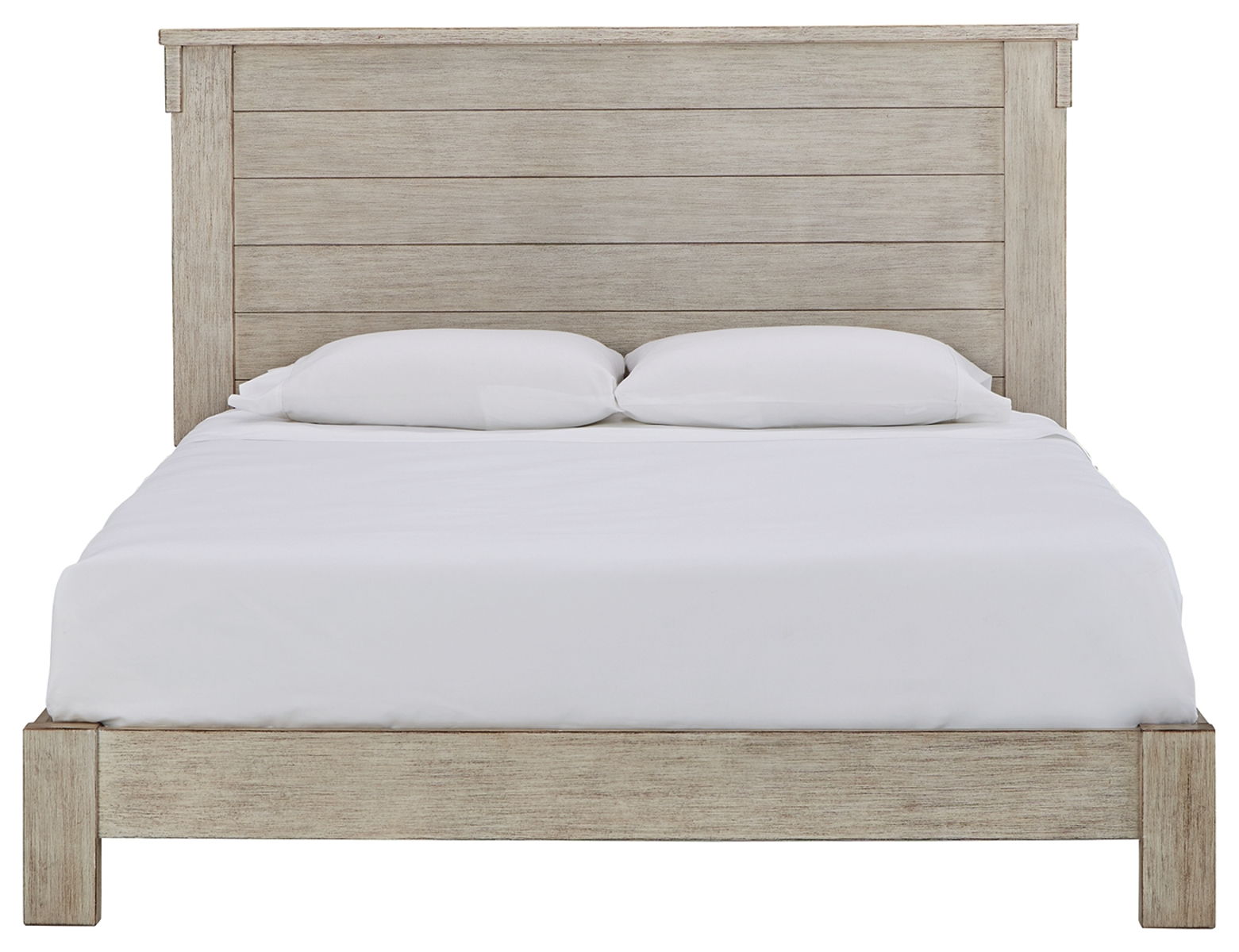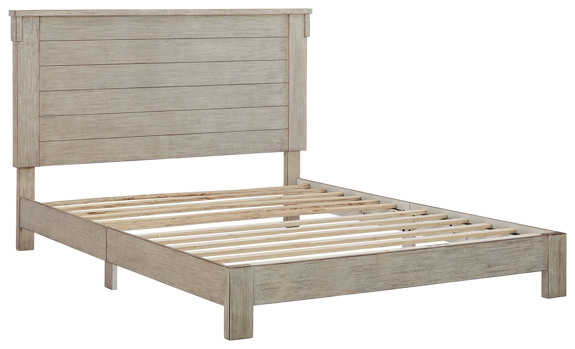 Enhance your bedroom with a touch of casual glitz. This panel bed’s rubbed white finish with a blend of rich texture and woody undertones is sure to please. The panel headboard design adds subtle flair. Best of all, the slat support system eliminates the need for a box spring foundation.